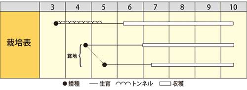 ●草丈1m位の矮性種で節間が短く、ハウス栽培やトンネル早熟栽培にも適します。