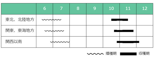 ○播種時期を考慮し品種を選定する。