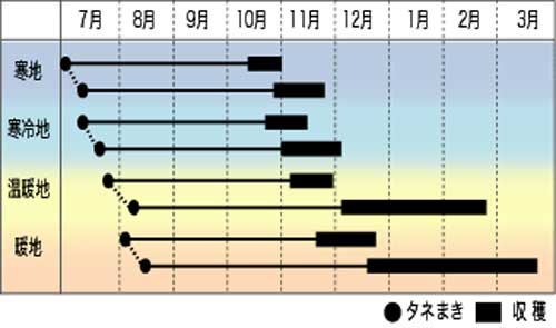 ●火山灰土壌に適し、夏播きして晩秋から冬どりするのに適します。